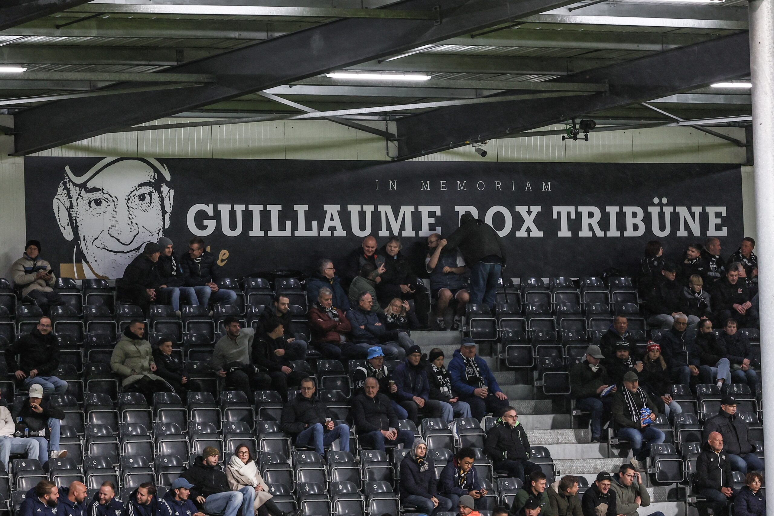 Vor dem Anpfiff wurde der im vergangenen Jahr im Alter von 88 Jahren verstorbene Guillaume Rox geehrt, nach dem die Tribüne am Kehrweg benannt wird. Foto: Belga