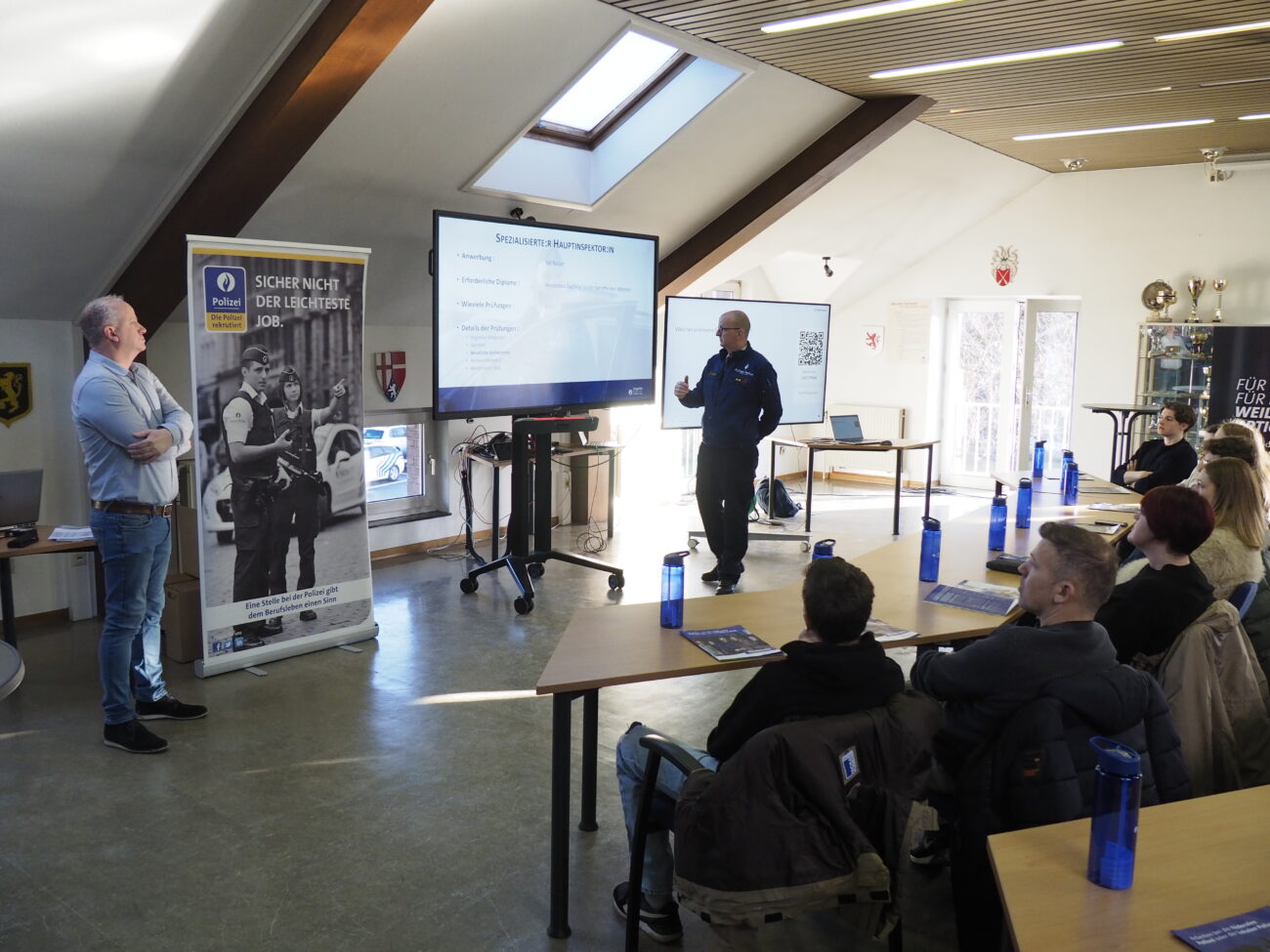 Neben allgemeinen Informationen zu Einstiegsvoraussetzungen, Auswahltests und Ausbildung konnten sich Interessierte direkt mit aktiven Polizeibeamten austauschen und Fragen zum Berufsalltag stellen.