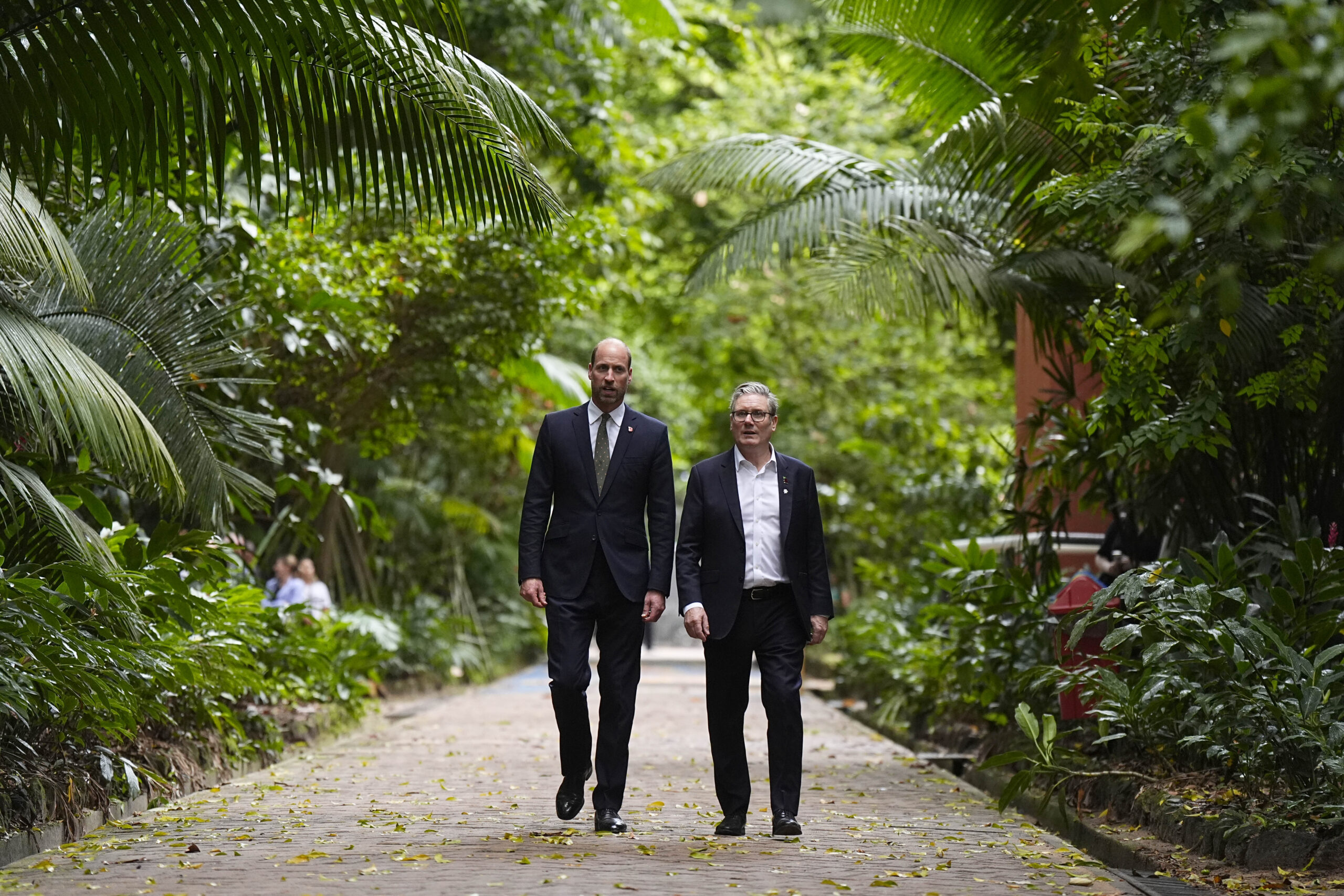06.11.2025, Brasilien, Rio De Janeiro: Der britische Premierminister Keir Starmer (r) und der britische Prinz William bei einem Besuch des Emilio-Goeldi-Museums, im Rahmen des Cop30-Gipfels. Foto: Aaron Chown/PA Wire/dpa