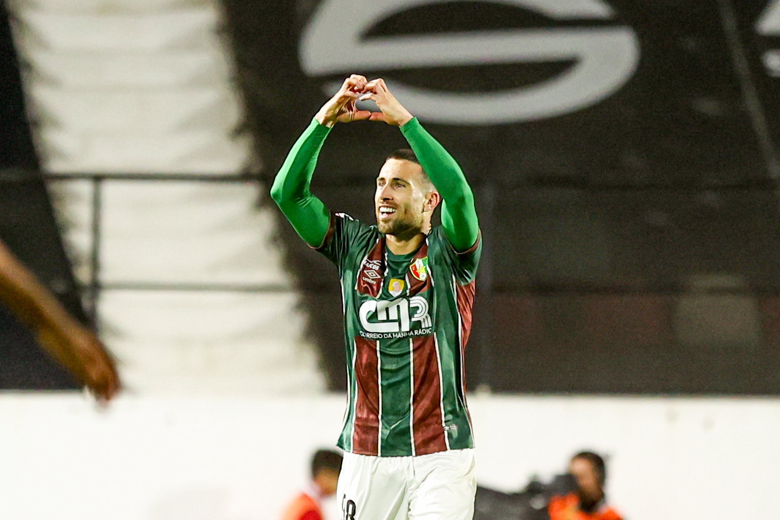 26.04.2025, Portugal, Amadora: Angreifer Kikas jubelt nach einem Treffer in einem Spiel zwischen CF Estrela Amadora und dem FC Porto. Foto: Valter Gouveia/SPP/Sipa USA/Belga