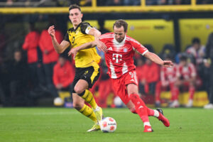 Keine zehn Minuten nach Wiederanpfiff war es kurzzeitig vorbei mit der guten Abwehrarbeit der Dortmunder. Beim Ausgleich durch Goalgetter Kane rückte der für Can eingewechselte Ramy Bensebaini etwas zu ungestüm aus dem Abwehrzentrum raus, weshalb Serge Gnabry und Torschütze Kane bei einem Chipball von Joshua Kimmich komplett frei vor dem BVB-Tor auftauchten. Der Kapitän der englischen Nationalmannschaft ließ sich diese Einladung nicht nehmen und vollstreckte zum 29. Mal in dieser Saison.