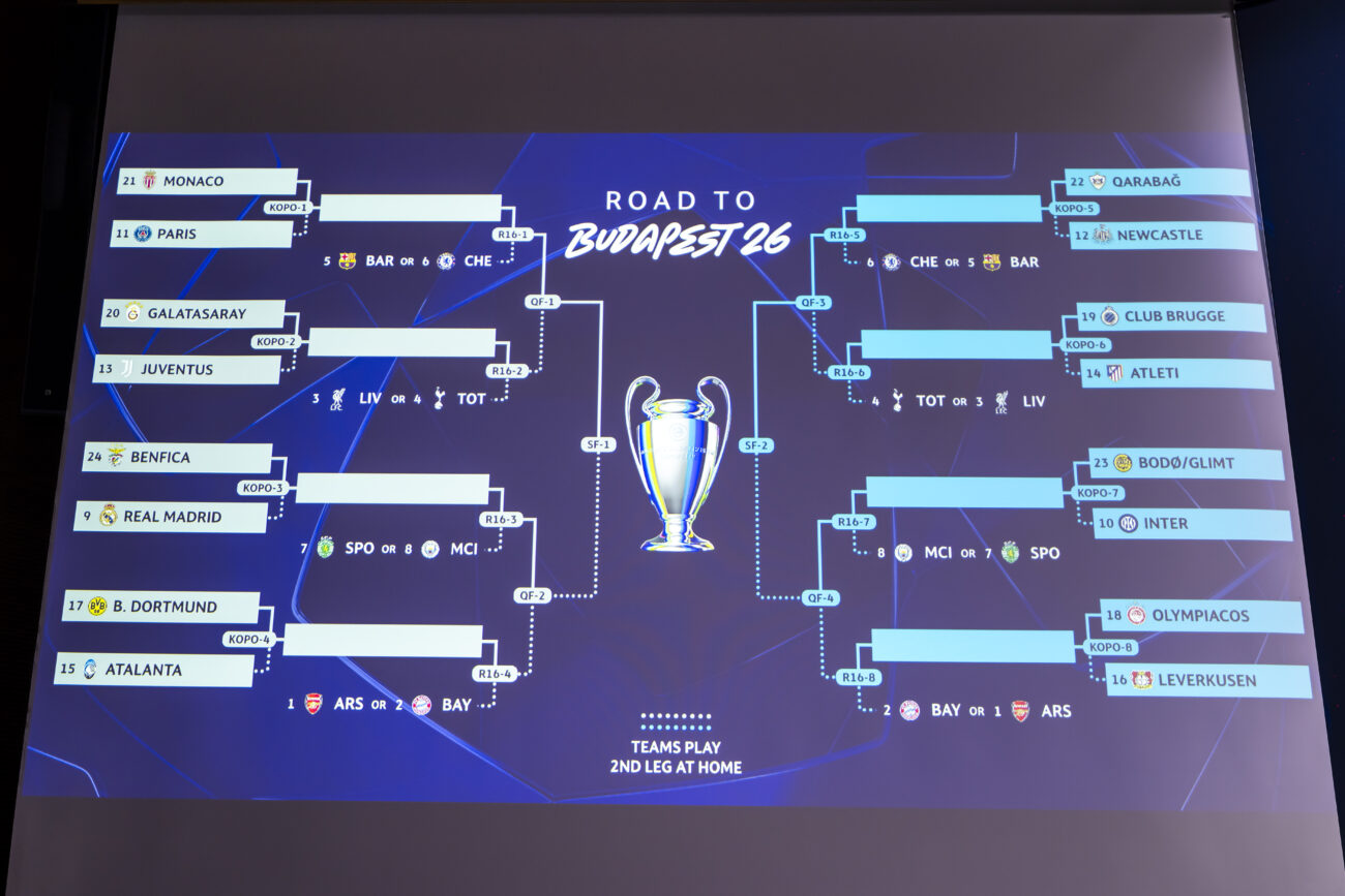 Atlético, in Spanien die Nummer 3 hinter Barça und Real, qualifizierte sich als 14. für die nächste Runde des Champions-League-Turniers. Unter der Leitung von Trainer Diego Simeone gewann das Team unter anderem mit 3:1 gegen Union Saint-Gilloise. Das Hinspiel im Jan-Breydel-Stadion wird am 17. oder 18. Februar ausgetragen, eine Woche später, am 24. oder 25. Februar, steht das Rückspiel in Madrid auf dem Programm.