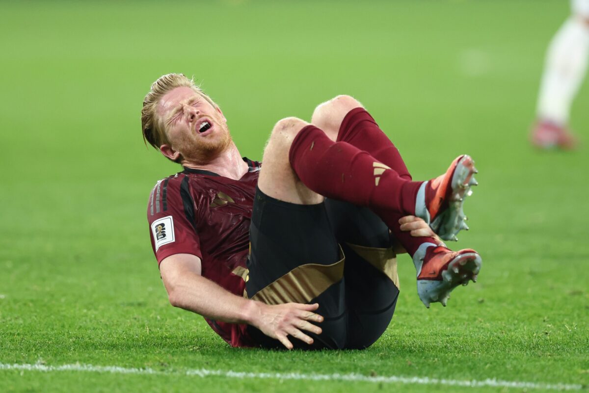 Die Teamkollegen umringten den Schützen, um das Tor zum 1:0 zu feiern, merkten jedoch schnell, dass der Belgier sein Bein nicht mehr auf den Boden setzen konnte. Unter Tränen musste „King Kev“ von mehreren Mitarbeitern mit großer Mühe vom Platz getragen werden. Später kehrte der Belgier auf Krücken zurück und nahm auf der Ersatzbank Platz.