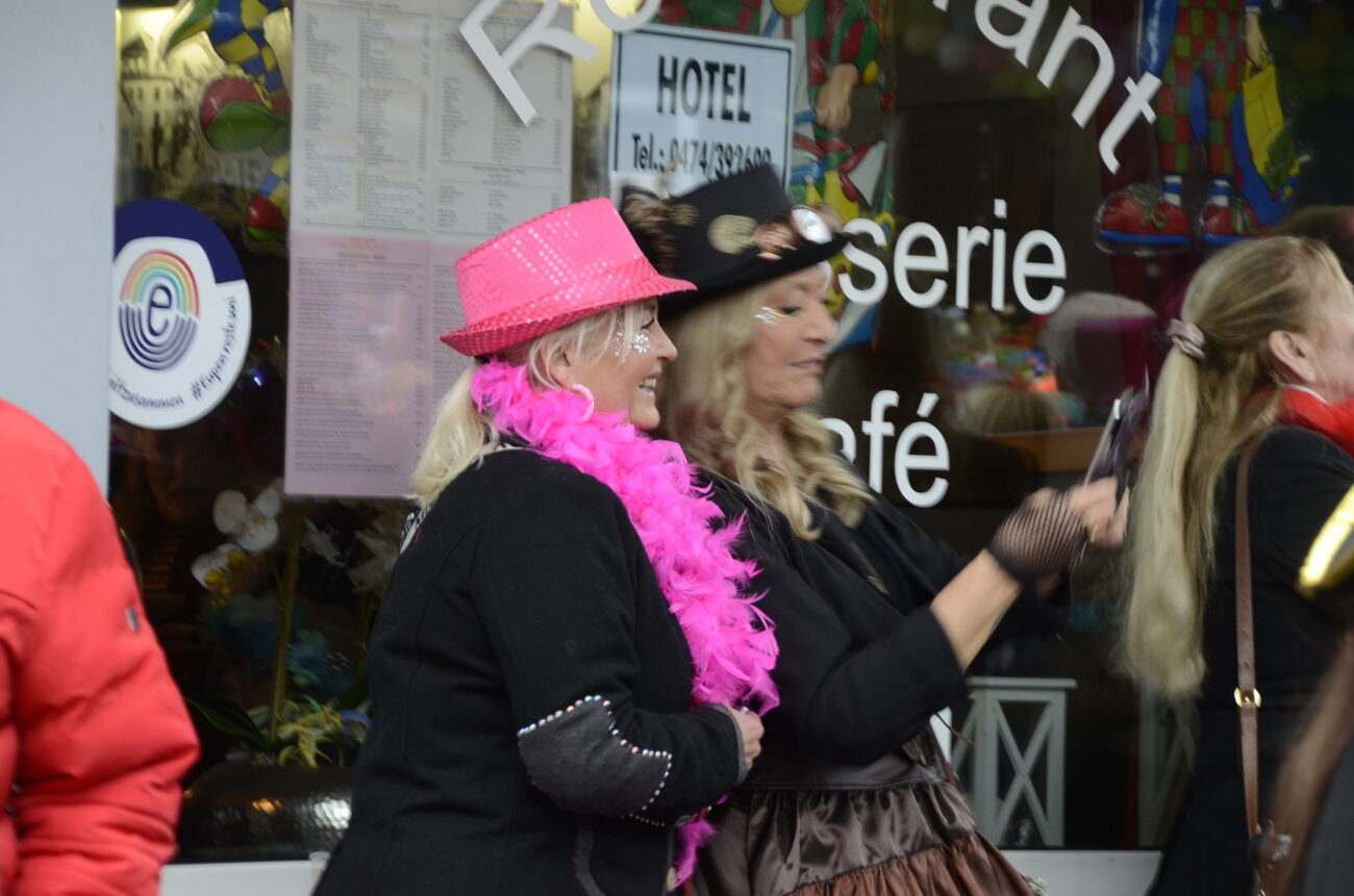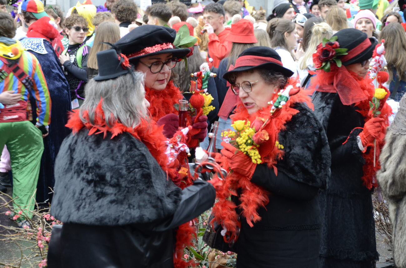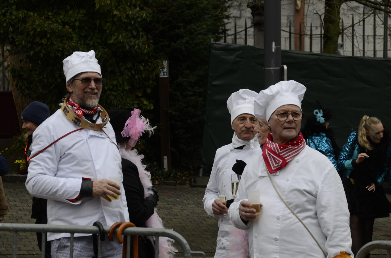 In Begleitung der Fidelen Juppen, der Blos m‘r jet und der Bums Kapell sowie der Ketteniser Musik gings zum Pflegeheim St. Josef und anschließend zur Bergstraße, wo der Clown den Eupener Frauen um 10.30 Uhr seine Aufwartung machte.