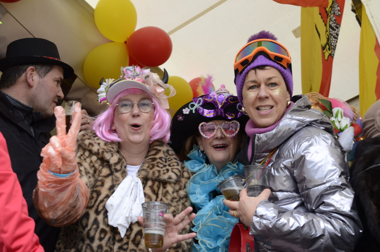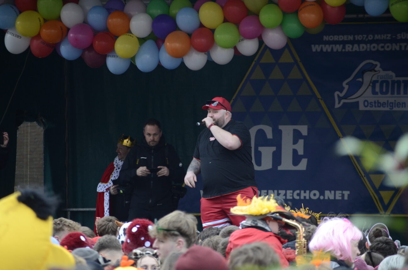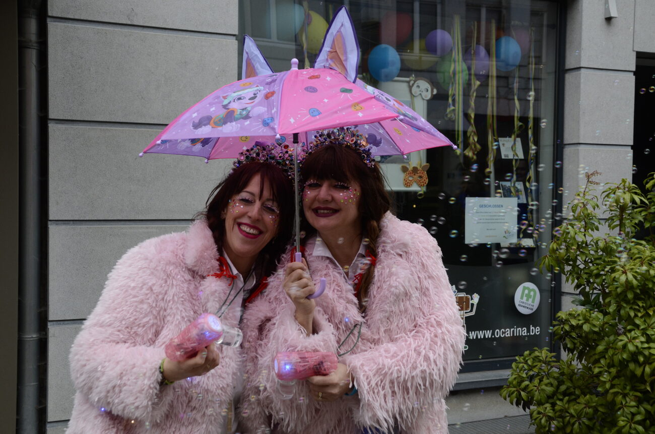 Obwohl das Wetter regnerisch war, feierten die Jecken unter freiem Himmel. Für „Ostbelgien Direkt“ war Fotograf Helmut Koch mit seiner Kamera dabei. Wegen des schlechten Wetters tummelten sich weniger Jecke zwischen Mariensäule und Pfarrkirche. Diejenigen, die vor Ort waren, sollten es jedoch nicht bereuen. Mit dabei waren Los Cannonos, Sven ohne Girls, Domm en Dööl, Mike Nüchtern sowie LC Jonge, die mit ihren Auftritten für beste Stimmung sorgten.