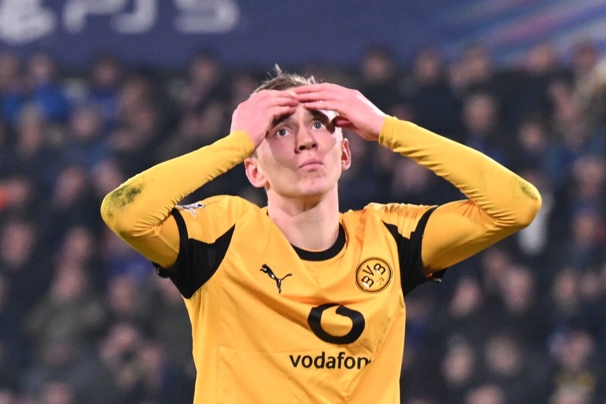 25.02.2026, Italien, Bergamo: Maximilian Beier (Borussia Dortmund) reagiert während der Partie. Foto: Federico Gambarini/dpa