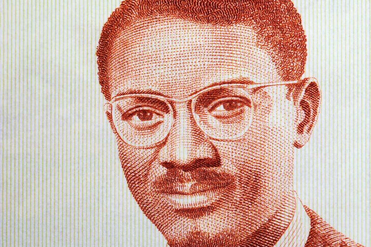 Patrice Lumumba, der kongolesische Unabhängigkeitsführer und erste Premierminister des unabhängigen Kongos. Porträt auf einer Banknote von Guinea (1971). Foto: Shutterstock