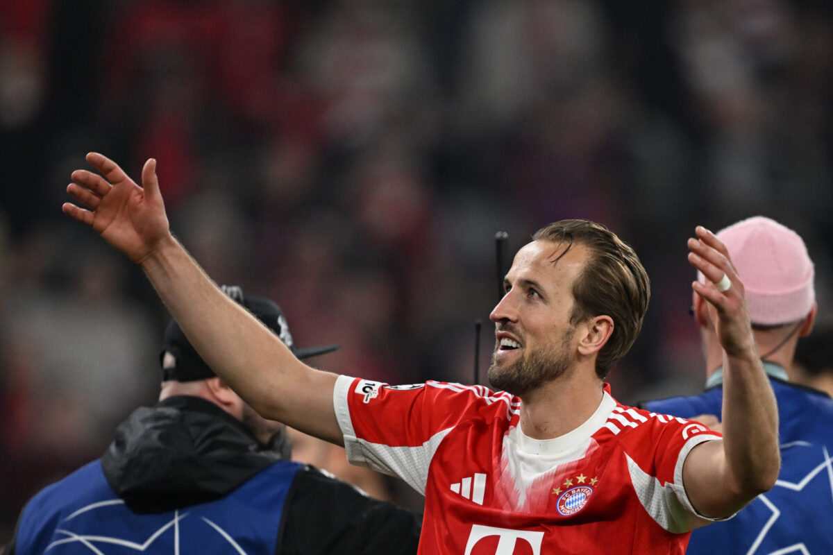 15.04.2026, Bayern, München: Harry Kane (Bayern München) feiert nach dem Spiel. Foto: Sven Hoppe/dpa