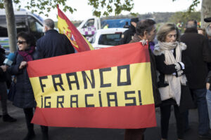 Erst am 8. November gab es auf einer größeren Neonazi-Kundgebung in Madrid beängstigende Szenen. Hunderte vorwiegend vermummte und dunkel gekleidete Demonstranten zeigten vor TV-Kameras den Hitlergruß, sangen faschistische Lieder, trugen Banner mit Aufschriften wie „White Lives Matter“ skandierten „Viva Franco“, setzten Müllcontainer in Brand und prügelten sich mit der Polizei. Festnahmen gab es an dem Abend nur ganze drei.