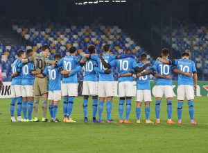 AKTUALISIERT – In Andenken an Fußball-Legende Diego Maradona liefen alle Spieler des SSC Neapel am Donnerstagabend vor dem Europa-League-Spiel gegen NK Rijeka mit der Nummer 10 auf dem Rücken und dem Namenszug des früheren Napoli-Stars ins Stadion ein.