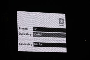 19.10.2025, Hamburg: Auf der Anzeigetafel wird die Überprüfung einer Abseitsposition angezeigt. Foto: Marcus Brandt/dpa