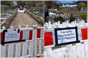Wenn in den sozialen Medien die Arbeiten auf dem Eupener Friedhof viel Beachtung fanden, dann ist dies vor allem darauf zurückzuführen, dass die Besucher zunächst beim Betreten des Friedhofes auf einen Hinweis stießen, auf dem geschrieben stand: „Anlieger bis Baustelle frei!!!“