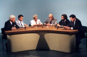 Sechs oder sieben Männer sitzen an einem Tisch und tauschen sich rauchend und trinkend über die Weltlage aus. Dieses Konzept trug über 30 Jahre lang eine der erfolgreichsten Fernsehsendungen – den „Internationalen Frühschoppen“.