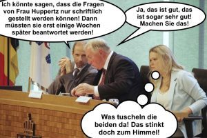 Verstehe die ganze Aufregung nicht. Frau Huppertz kriegt doch eine Antwort. Nicht öffentlich, aber dann schriftlich. Dann kann sie noch immer reagieren. Wenn es ihr um die Thematik geht, dann müsste dies ausreichen. Wenn Sie öffentlich wirksame Presse braucht, dann kann sie doch noch immer. Frau Huppertz muss noch viel lernen!