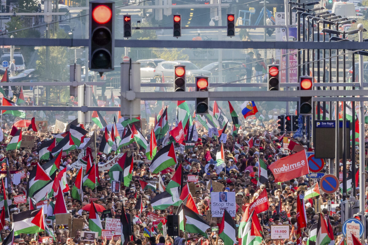 An der Kundgebung zur Unterstützung Palästinas haben am Sonntagnachmittag in Brüssel nach Polizeiangaben 70.000 Demonstranten teilgenommen. Die Organisatoren sprachen hingegen von 110.000 Menschen.