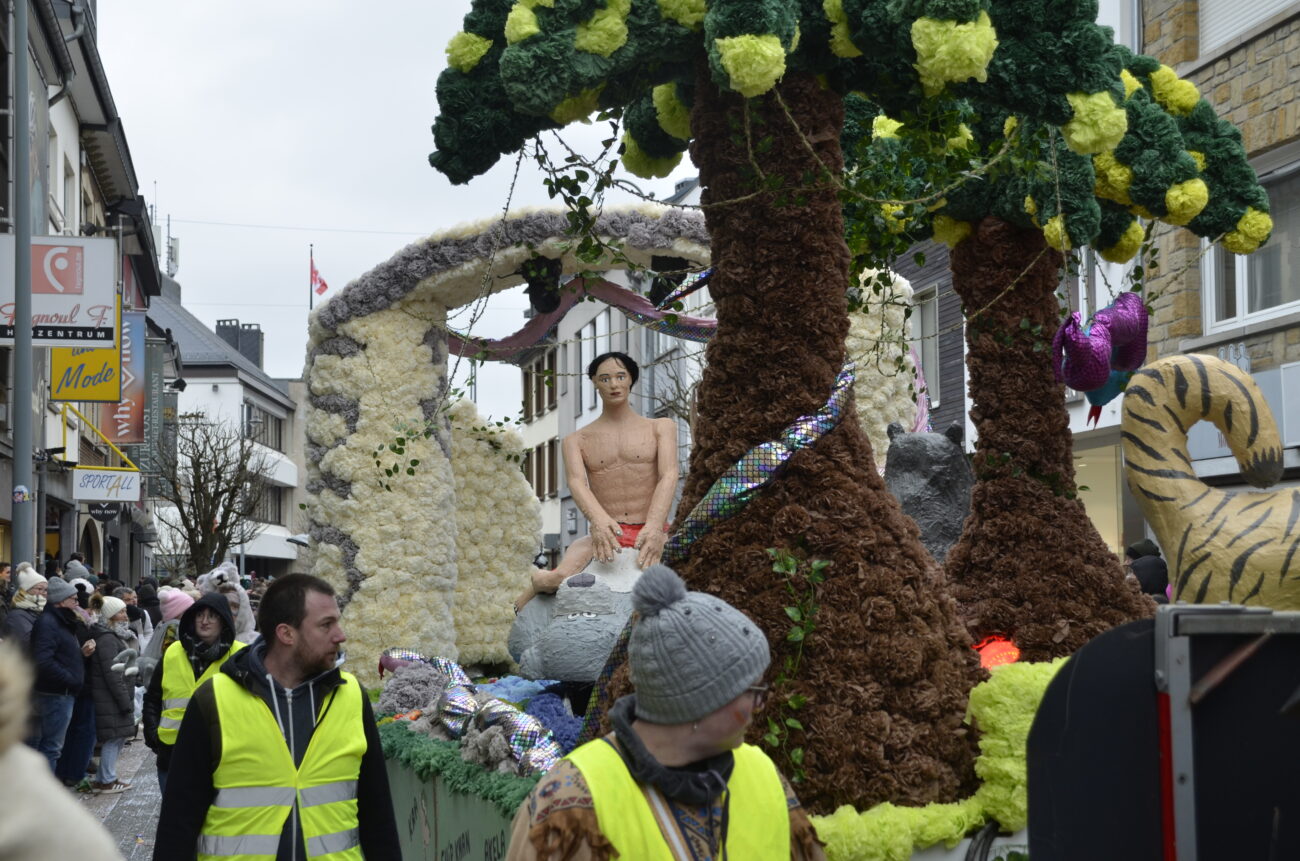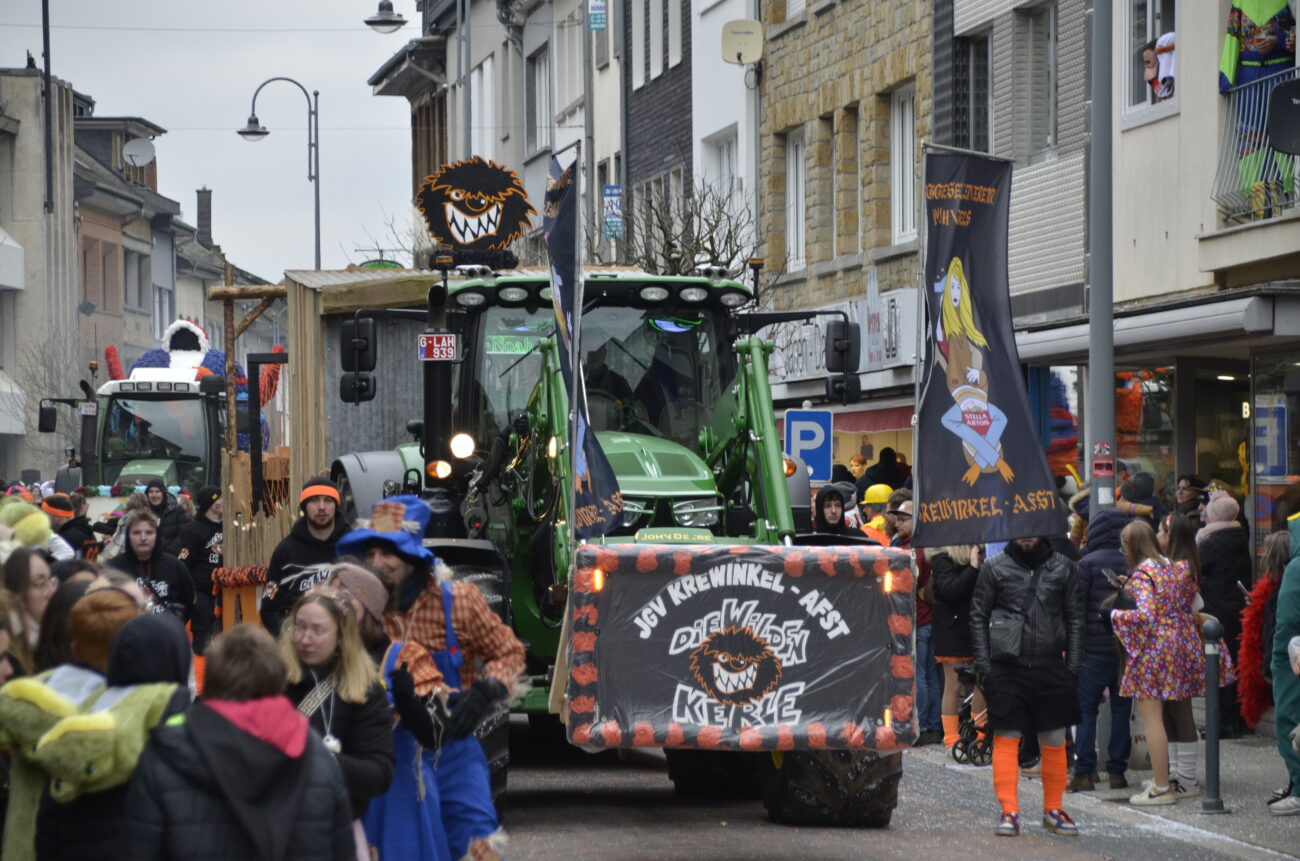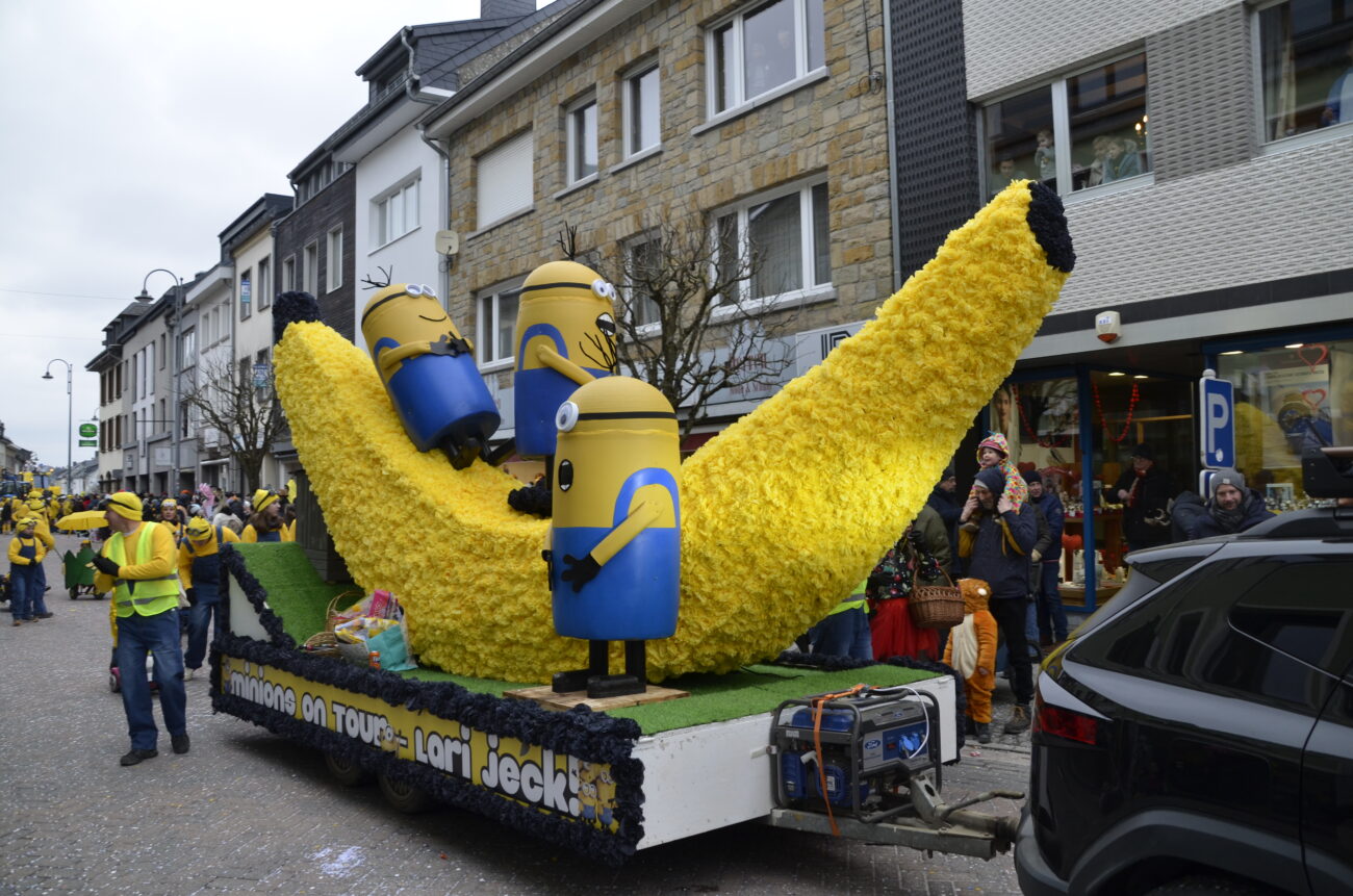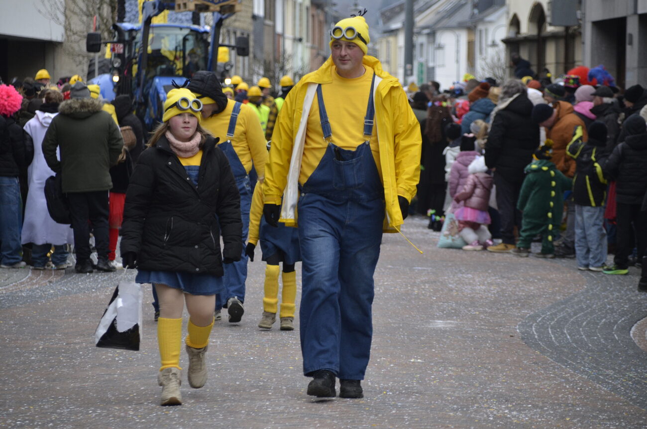 Erneut bot der Zug in St. Vith den Zuschauern ein farbenfrohes Spektakel aus geschmückten Wagen, Fußgruppen, Musikgruppen und fantasievoll kostümierten Jecken. Dabei reihte sich eine originelle Gruppe an die nächste, oft mit lokalen Bezügen und viel Humor – ein Sinnbild für die lebendige Karnevalstradition im Süden der Deutschsprachigen Gemeinschaft.