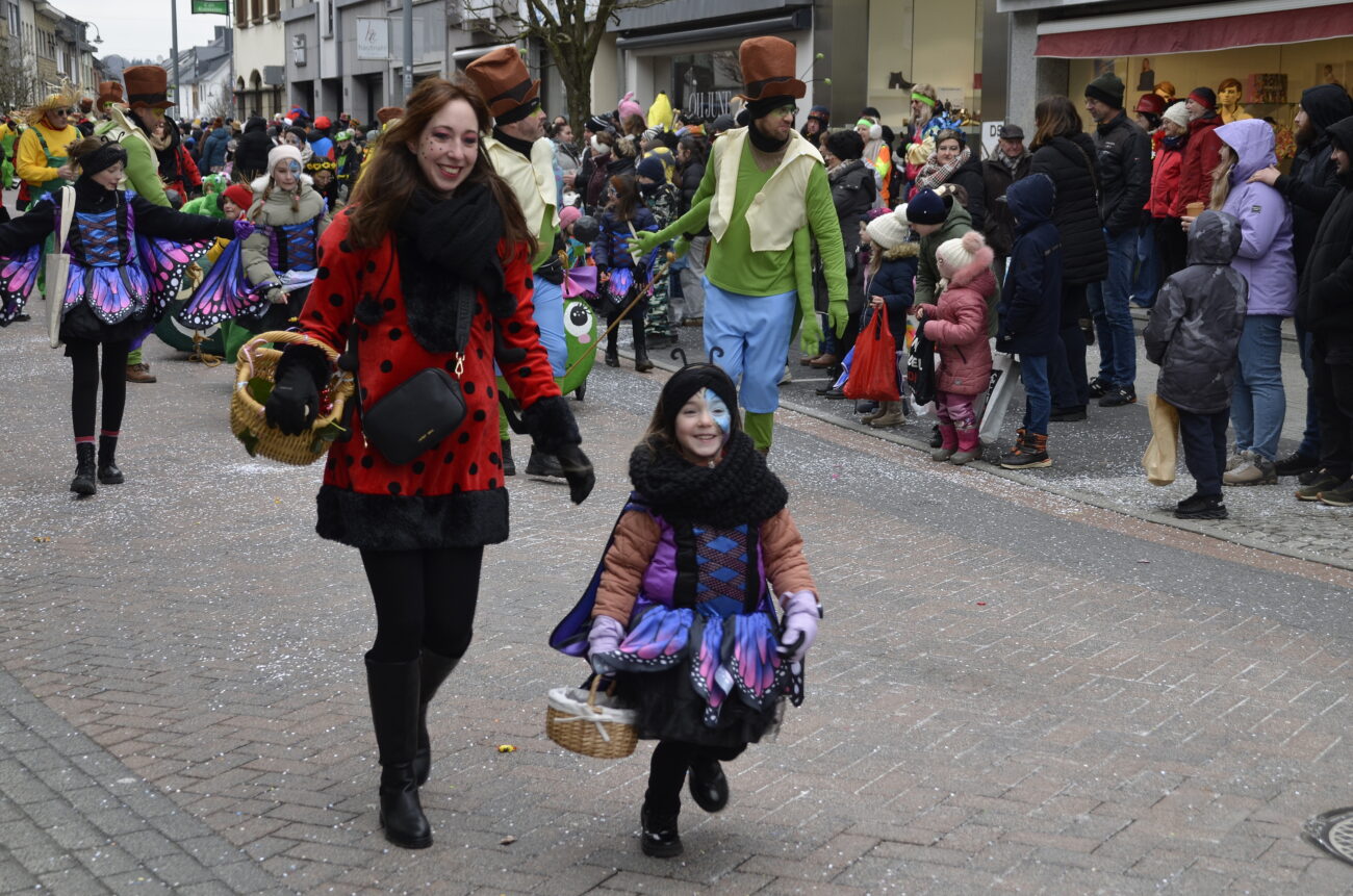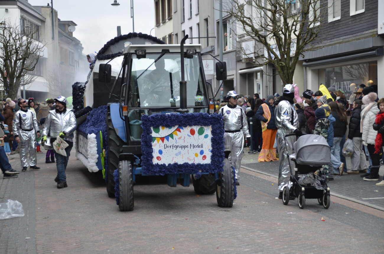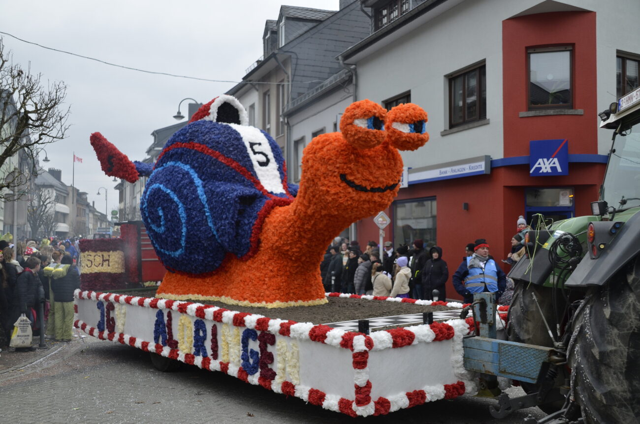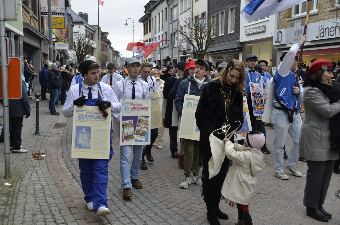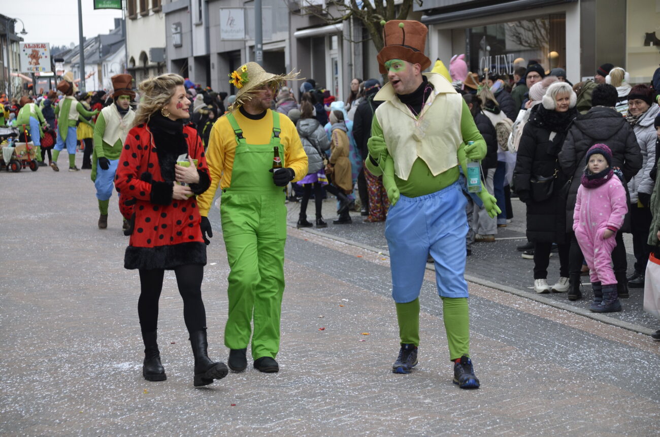 Erneut bot der Zug in St. Vith den Zuschauern ein farbenfrohes Spektakel aus geschmückten Wagen, Fußgruppen, Musikgruppen und fantasievoll kostümierten Jecken. Dabei reihte sich eine originelle Gruppe an die nächste, oft mit lokalen Bezügen und viel Humor – ein Sinnbild für die lebendige Karnevalstradition im Süden der Deutschsprachigen Gemeinschaft.