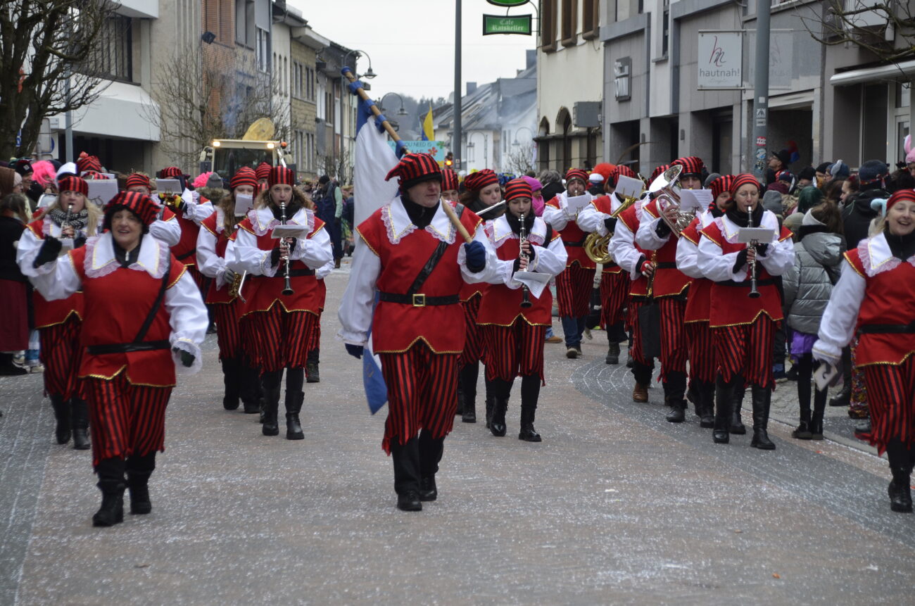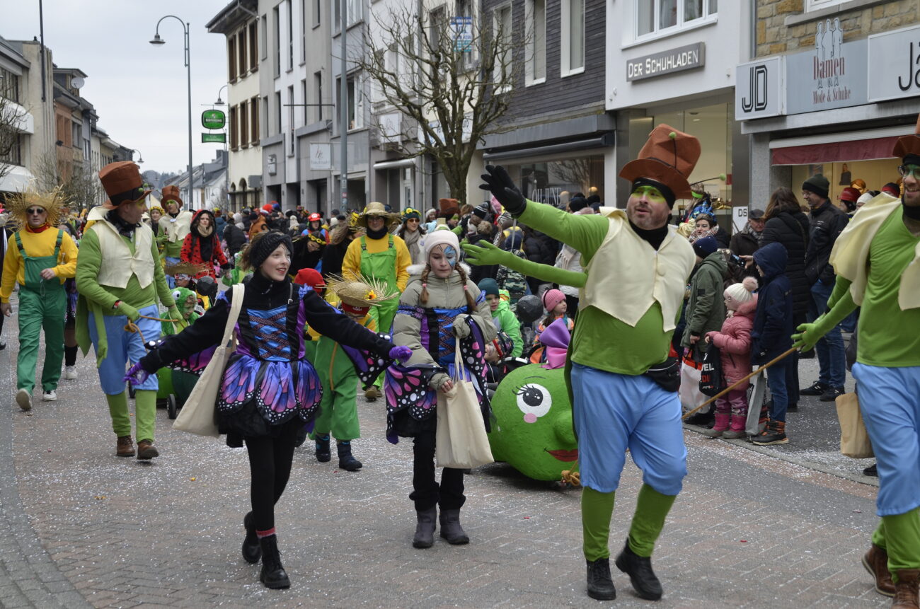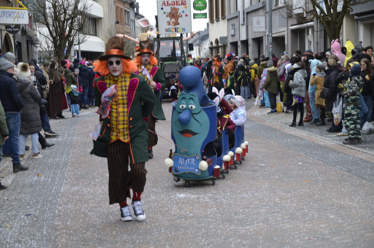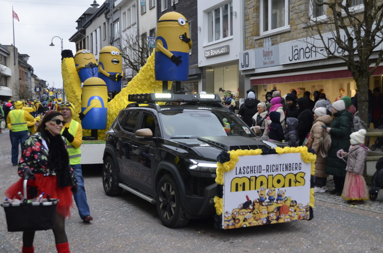 Erneut bot der Zug in St. Vith den Zuschauern ein farbenfrohes Spektakel aus geschmückten Wagen, Fußgruppen, Musikgruppen und fantasievoll kostümierten Jecken. Dabei reihte sich eine originelle Gruppe an die nächste, oft mit lokalen Bezügen und viel Humor – ein Sinnbild für die lebendige Karnevalstradition im Süden der Deutschsprachigen Gemeinschaft.