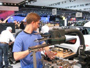 Die vielen Zuschauer des Brüssler Automobilsalons hatten so die Gelegenheit zu sehen, welche Anforderungen heute an einen Kfz-Mechatroniker gestellt werden.