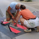 Warum wurde das mit kreidefarbe gemacht??? Warum nicht mit der Farbe für Straßenkennzeichnung in der verschiedene Farbpigmente zugefügt wird?… um auch dieses trostlose Grau dieser Stadt dauerhaft etwas ansehnlicher zu gestalten… es reicht nicht nur durch Menschen die Stadt bunter zu machen
