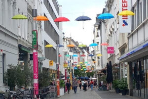 Die Idee, Geschäftsstraßen bunter zu gestalten, ist nicht neu. Auch die Stadt Bonn hat sich dafür entschieden, nur werden in der ehemaligen deutschen Hauptstadt nicht Zebrastreifen farbig gestaltet. Vielmehr schmücken Schirme unterschiedlichster Couleur die Straße (siehe Fotos anbei). Mit der Sicherheit der Fußgänger hat dies freilich nichts zu tun.