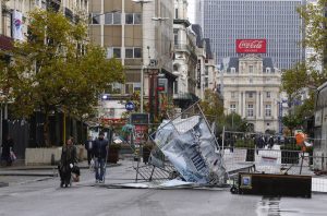 Blick am 12.11.2017 in Brüssel auf ein zerstörtes Schaufenster und Geschäft. Foto: Nicolas Maeterlinck/BELGA/dpa