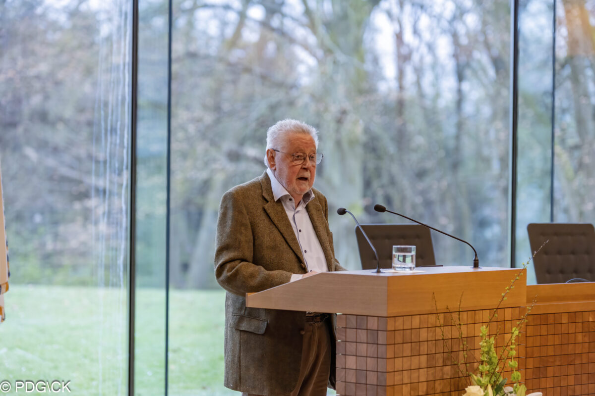 Der Eupener Journalist und Autor Marcel Bauer im März 2025 am Rednerpult im Plenarsaal des Parlaments anlässlich der Verleihung des PDG-Preises 2024 im Bereich Literatur. Foto: PDG/CK