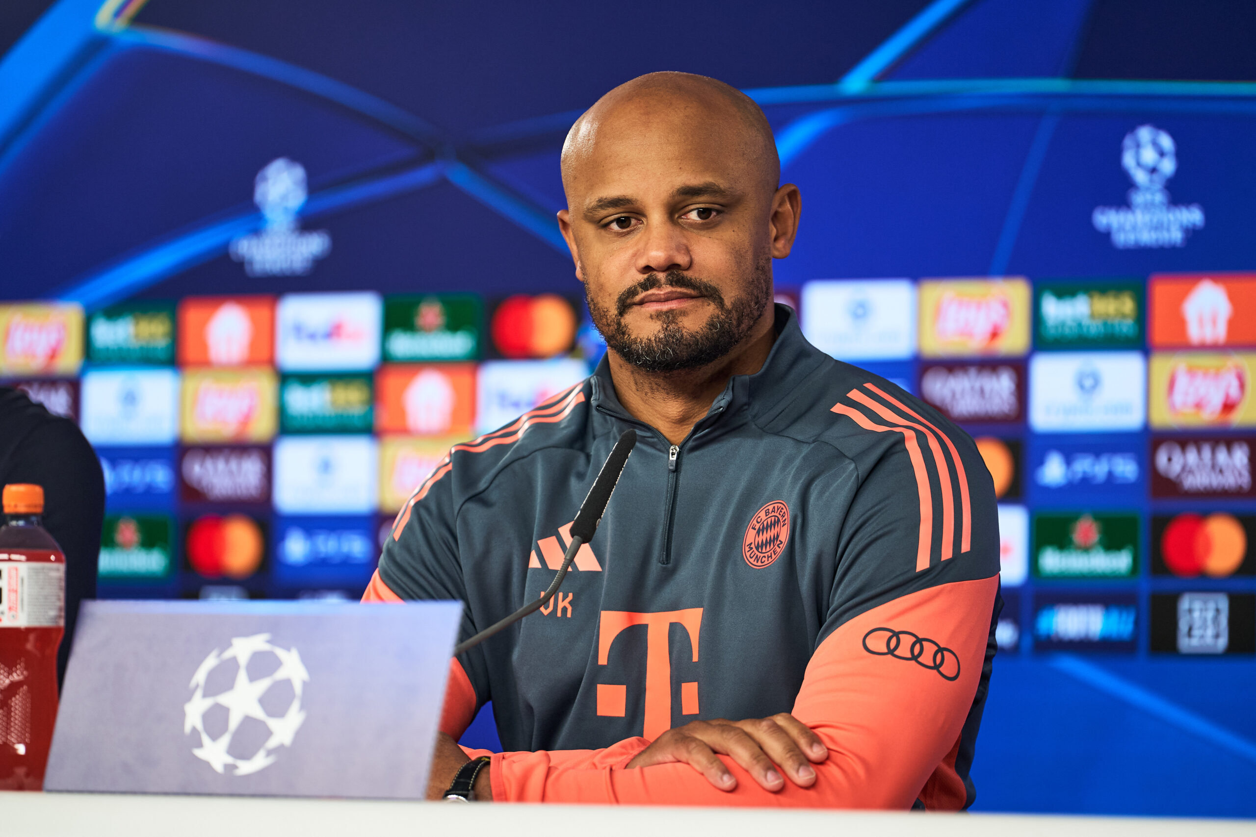17.03.2026, Bayern, München: Trainer Vincent Kompany (Bayern München) nimmt an einer Pressekonferenz teil. Foto: -/FC Bayern München/dpa