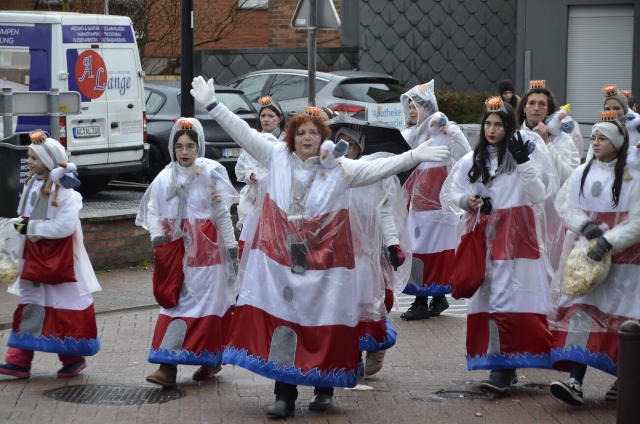 Startpunkt war die Lütticher Straße, von wo sich eine lange, bunte Schlange aus Wagen, Musikgruppen, Fußgruppen und Kostümierten durch den Ort zog.