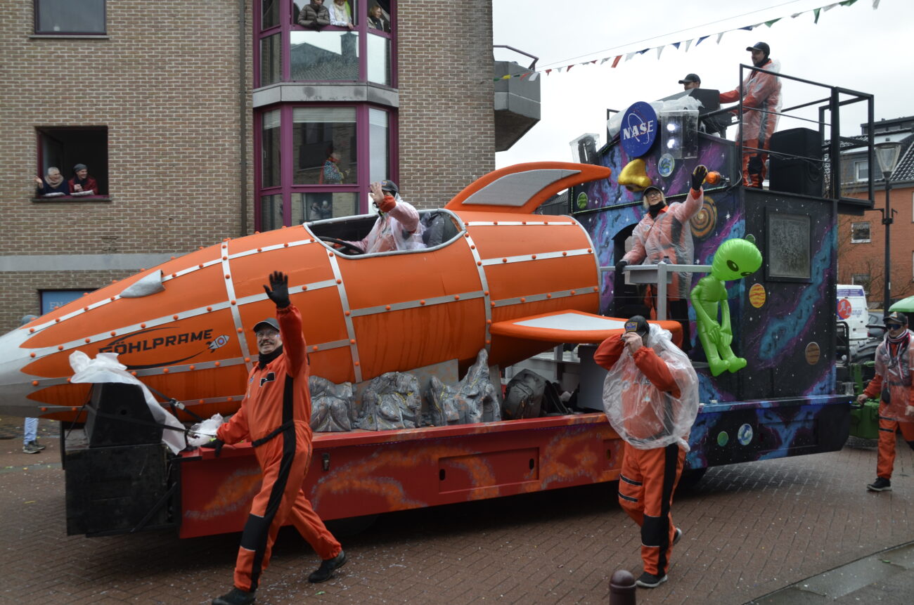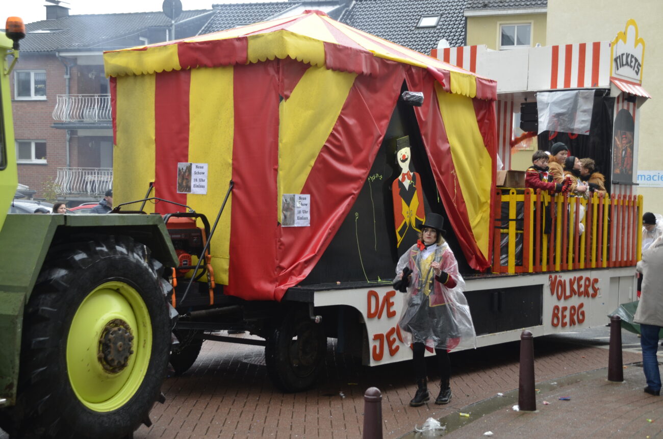 Über mehrere Stunden hinweg schlängelte sich der Zug durch die Kelmiser Straßen – darunter Heygraben, Lindenallee, Kapellstraße, Albertstraße, Patronagestraße, Steinkaulstraße und Kirchstraße – und bot den Zuschauern ein abwechslungsreiches Spektakel aus nahezu einhundert Motivwagen, Musikkapellen und ideenreich verkleideten Gruppen.