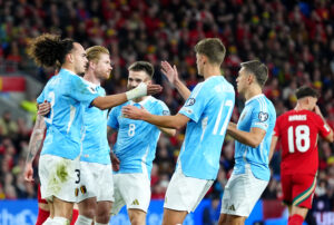 Die belgische Fußball-Nationalmannschaft ist der WM-Endrunde in den USA, Mexiko und Kanada ganz nahe. Die Roten Teufel siegten am Montag in Cardiff gegen Wales 4:2. Währenddessen kam Nordmazedonien gegen Kasachstan über ein 1:1 nicht hinaus. Belgien ist damit Tabellenführer in der Gruppe J.