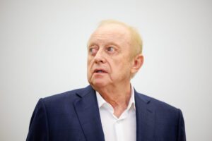 05.10.2022, Bayern, München: Alfons Schuhbeck (r), Koch und Unternehmer, kommt vor Prozessbeginn als Angeklagter mit seinen Anwälten Sascha König (l) und Markus Gotzens in den Gerichtssaal im Landgericht München I. Foto: Sven Hoppe/dpa
