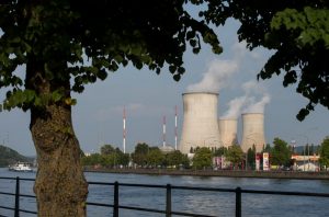 23.04.2019, Belgien, Tihange: Das Atomkraftwerk Tihange steht am Ufer der Maas. Foto: Eric Lalmand/belga/dpa