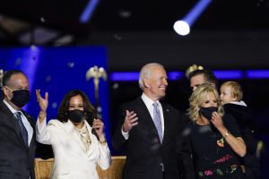 Die gewählte Vizepräsidentin Kamala Harris sprach in ihrer Siegesrede von einer Zeitenwende. „Als unsere Demokratie selbst auf dem Wahlzettel stand, die Seele Amerikas auf dem Spiel stand und die Welt zuschaute, habt ihr einen neuen Tag für Amerika eingeläutet“, sagte Harris. Die Amerikaner hätten sich mit der Wahl Bidens für Hoffnung, Einheit, Wissenschaft und Wahrheit entschieden, sagte Harris.