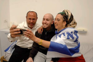13.10.2025, Israel, —: Geisel Eitan Mor (M), trifft seine Familie in der Erstaufnahmestelle, nachdem freigelassen wurde . Foto: Uncredited/Israeli Defense Forces/AP/dpa